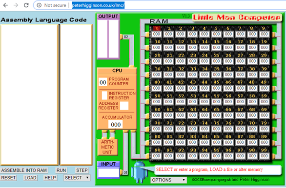 At A Level the final part of this topic, covered after all the content that was studied at AS, is the idea of addressing modes. The A Level text books like P138 – 146 in Surrall and Hamflett cover addressing modes in the context of assembly language programming in general. They use an x86 instruction set for examples but make no attempt to complete practical activities because LMC is limited in the form that it is used in the OCR GCSE and A Level exams, which are the most common in the UK. Hence for practical work it is necessary to use the AQA version of LMC which allows for more sophisticated code (inc indirect addressing) and is based on ARM architecture with some variations. The AQA LMC version goes beyond even what is expected or specified in AQA exams and makes some assumptions to allow us to do some useful things that are quite close to what you would do on a real CPU.