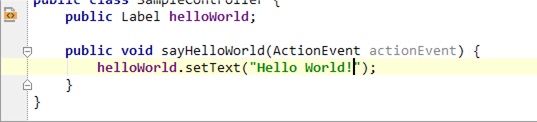 • In the fxml file, click on sayhelloWorld in the <Button line