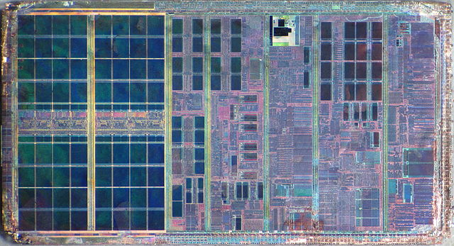 In this image of an AMD Athlon die, the cache memory can be seen on the left