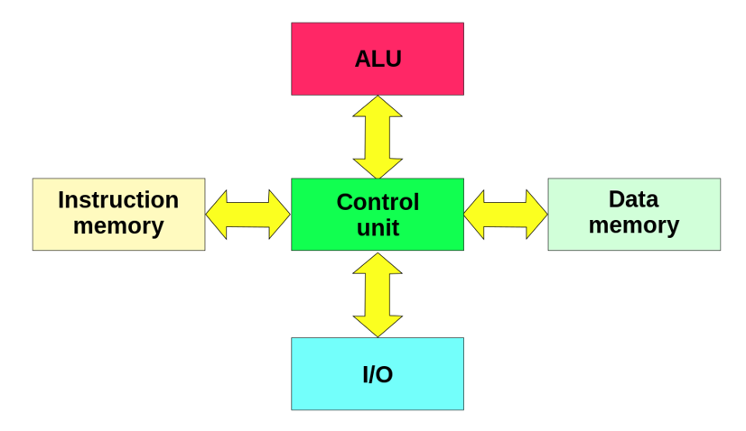 As the diagram below shows, there are now separate buses and memory for instructions and data. This means an instruction can be fetched on one bus (using the instruction memory data bus and address bus), at the same time as a data is fetched on another (the data memory data bus and address bus). Because instructions and data can be fetched at the same time, the overall performance is quicker than a Von Neumann CPU running at the same clock speed.